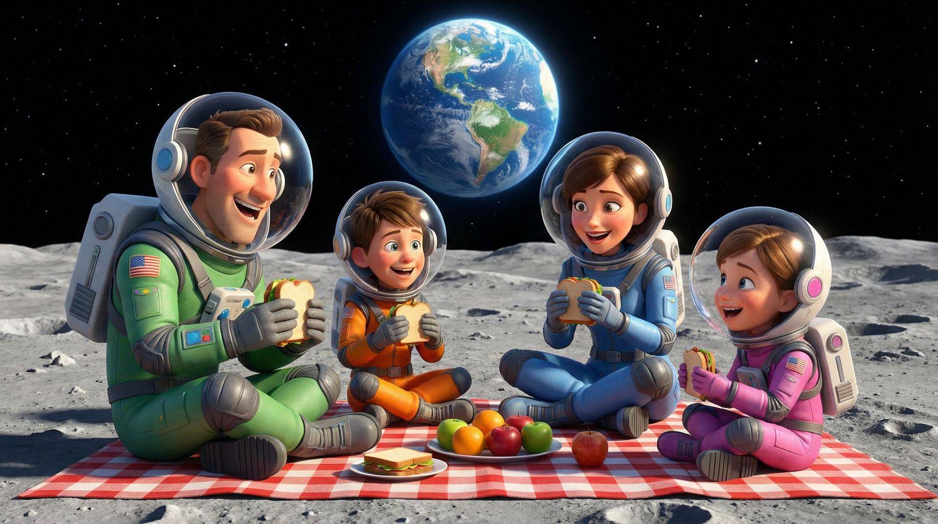 This week, let's create a family portrait with a twist! Use a free AI image generator like Microsoft Designer's Image Creator or Canva's Text to Image. Try a prompt like, "A family of four, in the style of a Pixar movie, having a picnic on the moon." Get creative with the prompts and see what you can come up with together. It's a fun way to explore the creative side of AI as a family.