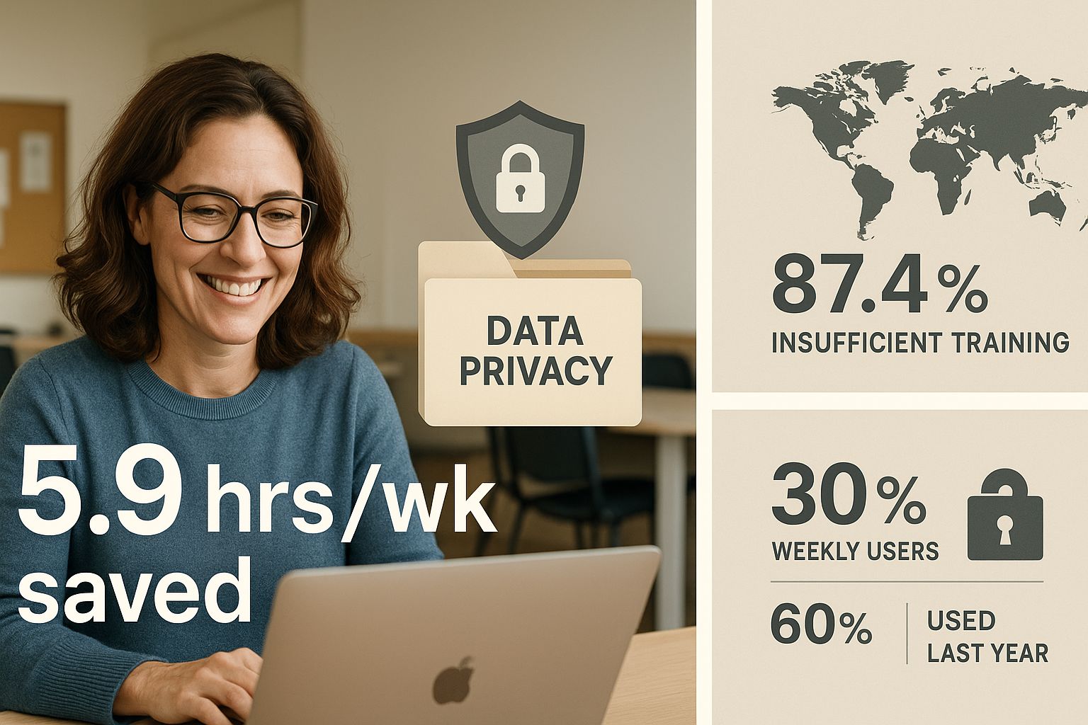 Teachers who use AI weekly save nearly six weeks of time per school year: A recent poll of over 2,200 teachers found that educators who use AI tools weekly save an average of 5.9 hours per week—that's six weeks annually. About 30% of teachers use AI weekly, with 60% having used it during the previous school year. The time saved allows them to provide better feedback, create personalized lessons, and communicate more effectively with parents. [Source: edsurge.com/news]
